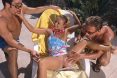 La chaleur était accablante, les corps du trio luisaient d’une sueur toujours plus abondante. Ils prirent le temps, après que Julia ait joui de nombreuses fois, d’aller piquer une tête dans la piscine toute proche, les mains féminines continuant de tripoter les queues de ces messieurs, histoire qu’ils ne débandent pas. Son appétit était aussi féroce qu’au début de leurs ébats !