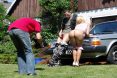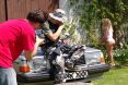 La chaleur du capot se mêlait à celle de nos corps, et je sentais la sueur perler doucement dans mon dos. Mon souffle s’accélérait, pas seulement par l’acte, mais par la conscience aiguë d’être observée. Le photographe, silencieux, évoluait autour de nous, son objectif capturant ce qui ne serait jamais dit, des regards, des ondulations, des instants entre deux battements de cœur.